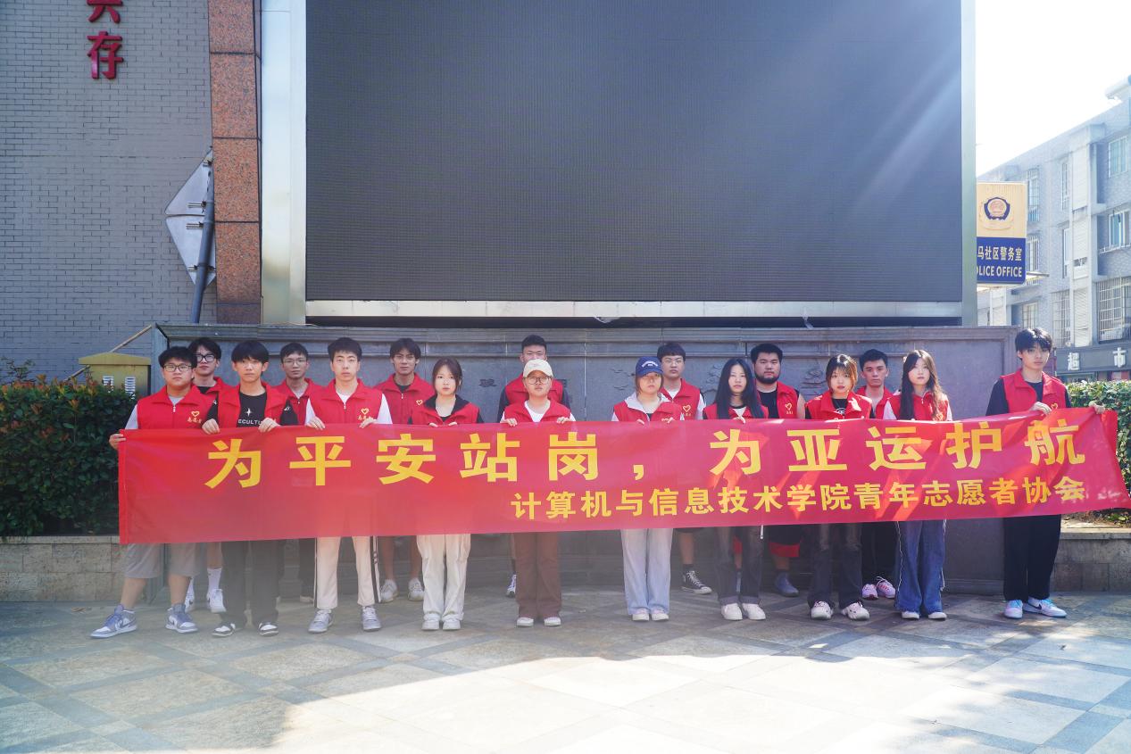 为了进一步发扬青年志愿者奉献精神,保障亚运会期间社区居民的消防安全,9月9日,计算机与信息技术学院组织学生志愿者参加了石马社区护航亚运消防安全检查志愿活动。