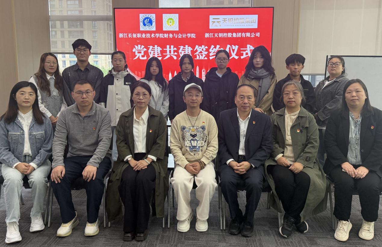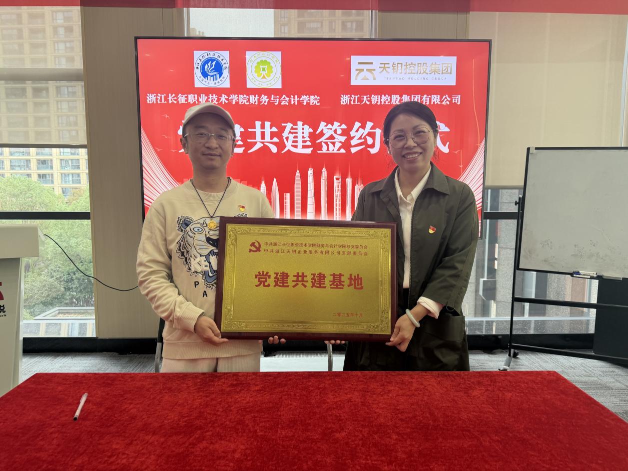 为深入贯彻落实党建引领校企合作发展的理念,搭建资源共享、优势互补的合作平台,近日,财务与会计学院(以下简称:“财会学院”)与浙江天钥企业服务有限公司(以下简称“天钥公司”)党建共建签约暨“党建共建基地”授牌仪式在天钥公司隆重举行。财务与会计学院院长丁增稳、党总支书记李晓梅、党总支副书记胡立东,天钥公司董事长、党支部书记余亮,人力资源部总监韩雪以及学生代表出席仪式。
