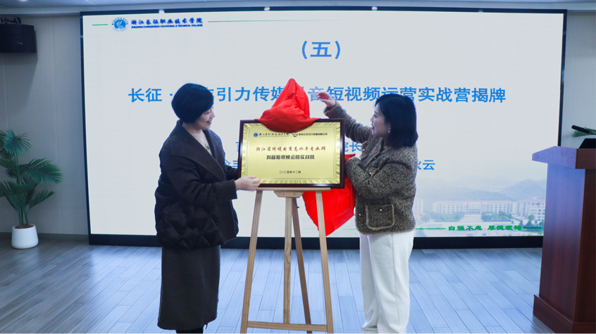 开班仪式上,校企双方领导共同为“长征·冷丰引力传媒短视频运营人才培养基地”与“抖音短视频运营实战营”揭牌。